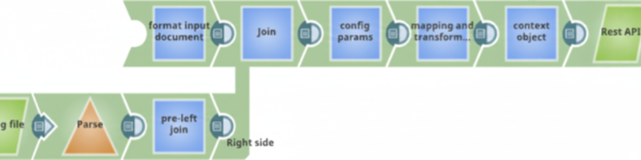 The original document is needed so that lineage can be maintained. Every incoming document in an Ultra Task must maintain Snap lineage across the pipeline. This operation allows the FeedMaster node to use the correlation ID to tie the request to the response. To maintain the lineage and identity of a static web service or file, use a Join Snap with a static key to link the static information to each request document. The following example pipeline demonstrates the usage of a Join Snap with a static configuration file for parameter mapping.