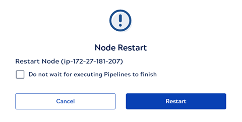 A confirmation dialog displays. To restart the node immediately, select Do not wait for executing Pipelines to finish checkbox and click Restart.