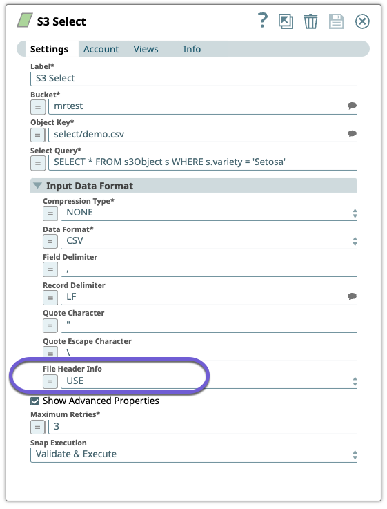 subset of the data from the S3 object. On validation, the Snap retrieves the data based on
