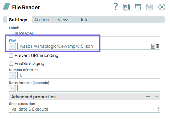 [ { "channels": "C02UJ4872QY", "initial_comment": "Demonstration of the multipart upload of a 'wasb' file using HTTP Client Snap's binary input view" } ] - Connect the