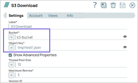 [ { "channels": "C02UJ4872QY", "initial_comment": "Demonstration of the multipart upload of a S3 file using HTTP Client Snap's binary input view" } ] - Connect the