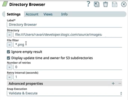In the below example, the Email Sender Snap sends an email with multiple attachments from the FILE location. The Email Sender Snap does not support wildcards in attachments to support multiple attachments. Therefore, the following Pipeline uses the Directory Browser Snap as an upstream Snap to combine multiple file paths and sends that to the Email Sender Snap.