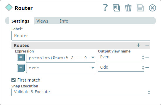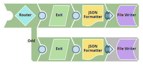 - The Router Snap routes the incoming documents into two branches, Even and Odd.