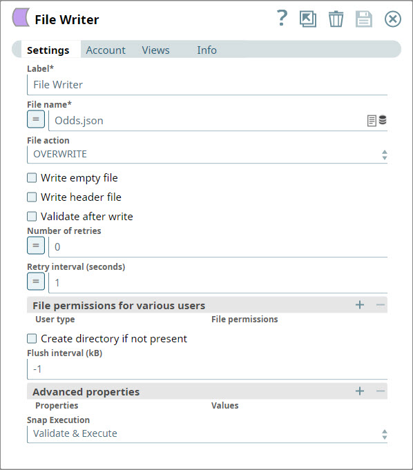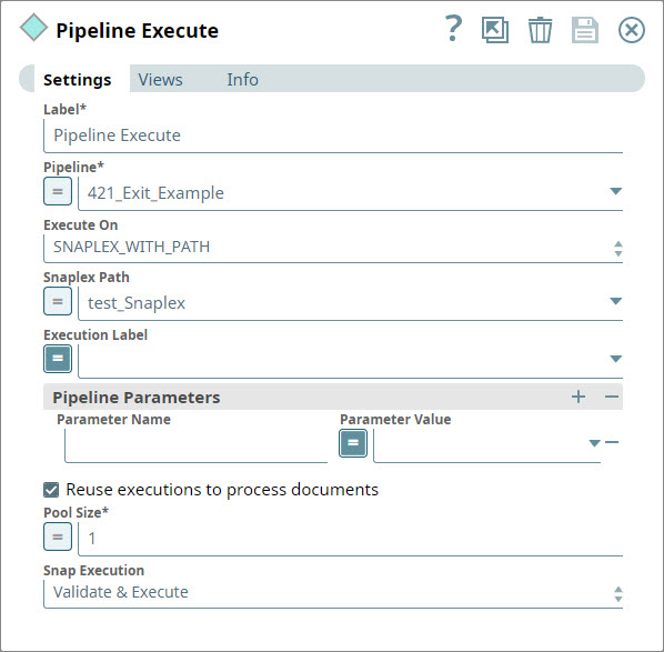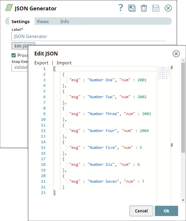 - Add a JSON Formatter Snap to the output view of each Exit Snap to convert the Exit Snap's output documents into a binary stream of data.