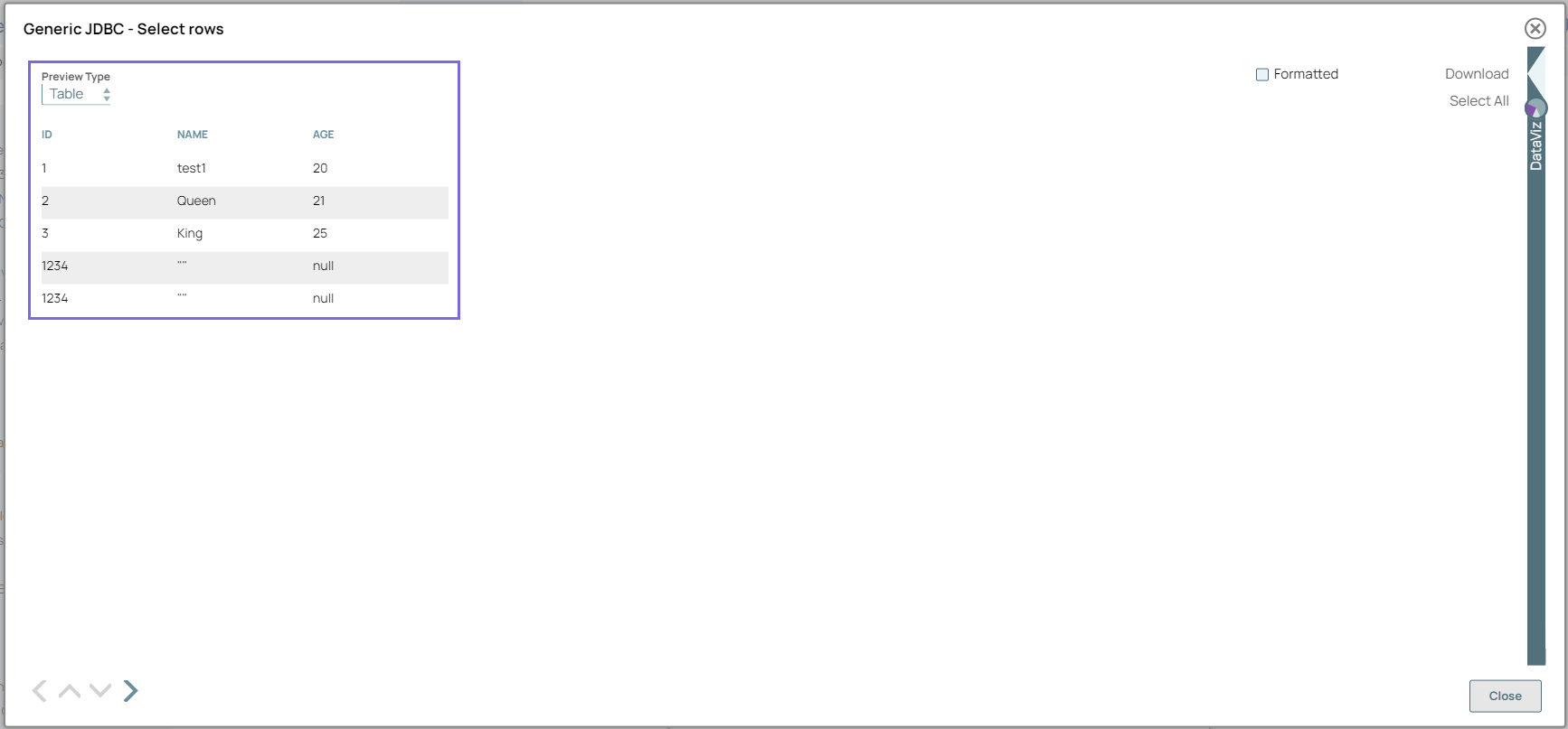 AGE column. On validation, the Snap displays the selected ACTRESS records