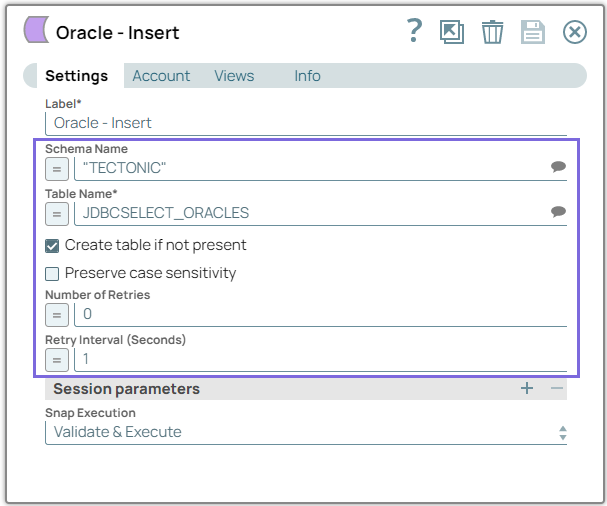into the Oracle database. On validation, the Snap displays a confirmation message