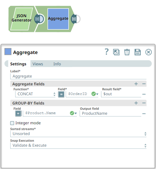 group the fields by Product names. To achieve this, configure this Snap with CONCAT