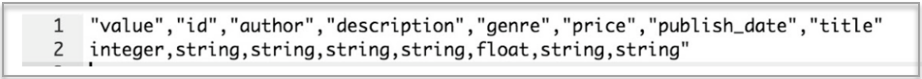 Note the data types are optional, and defined on the second line of the input file. The parser supports the use of 'string', 'integer', 'float' and 'boolean' types. String is the default data type, any empty data type fields are considered to be strings.