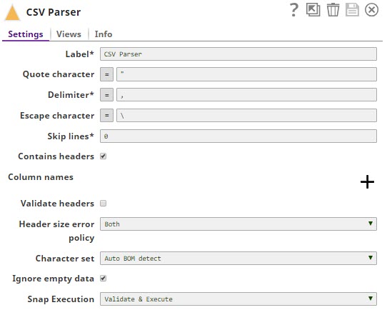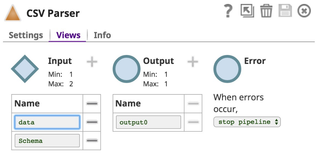 One of the features in the CSV Parser which customers sometimes request is the ability to define the fields (and their data types) for incoming CSV files. This is made easy by adding a second input view to the CSV Parser Snap, and providing the definition of the fields, and their data types in the flow.