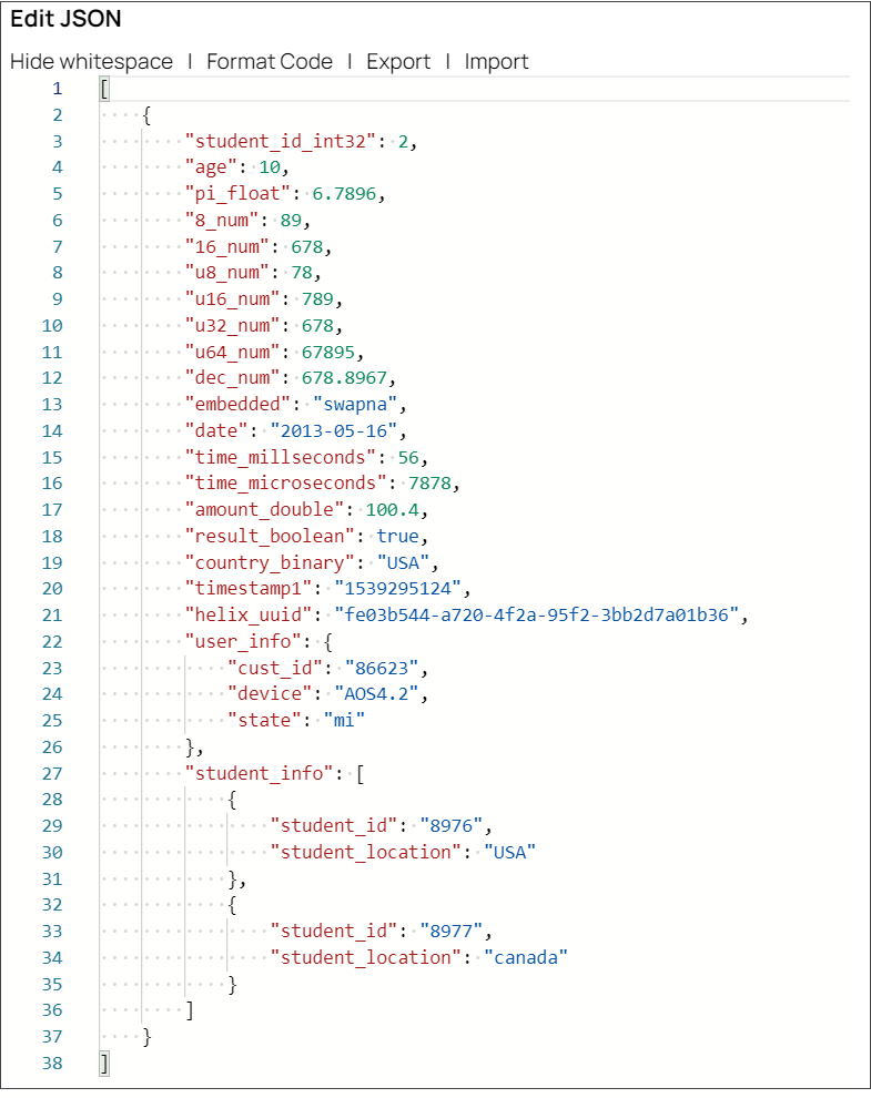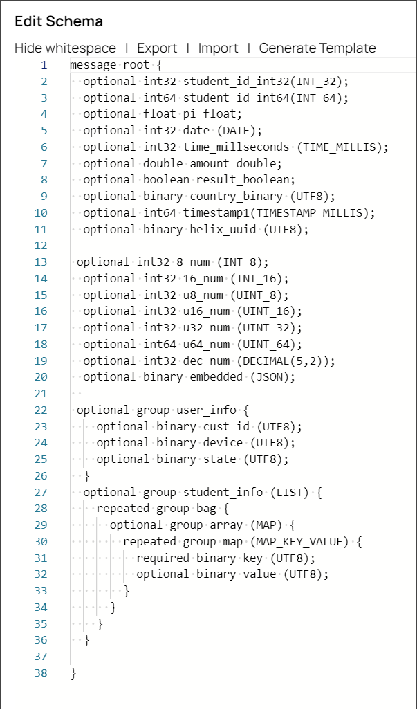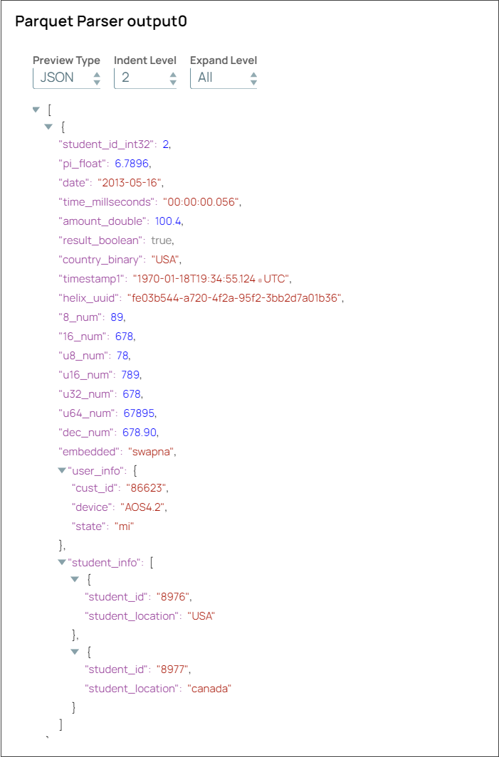 This example demonstrates how to convert the input document data to parquet and parquet data back to document output.