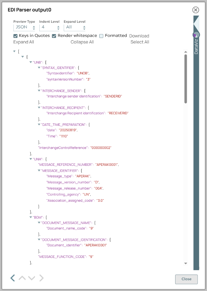 this data into a structured JSON document using the EDI Parser Snap.
