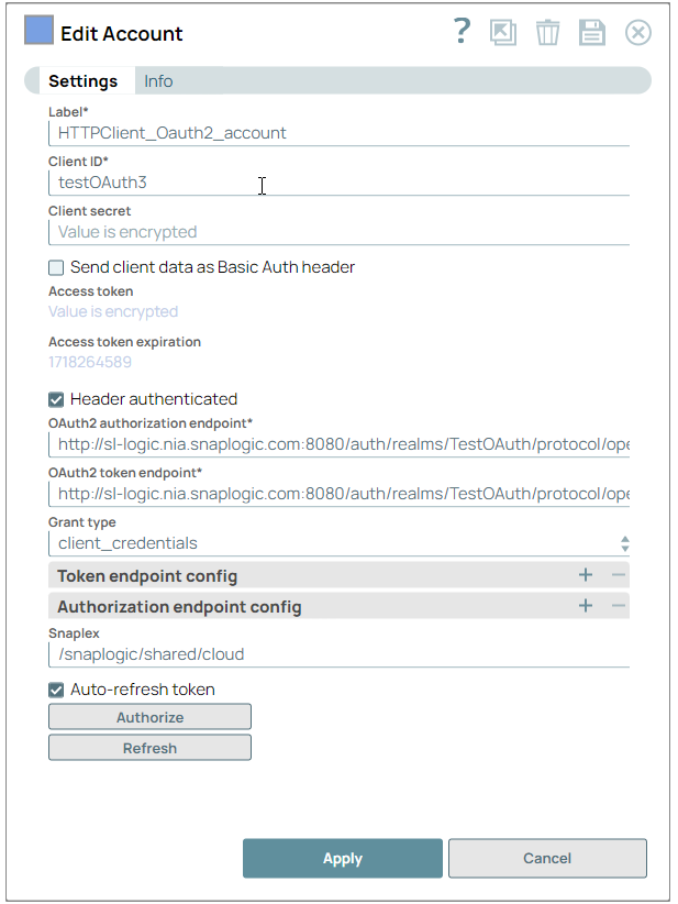 You can use this account type to connect the HTTP Client Snap with data sources that use the OAuth2 account.