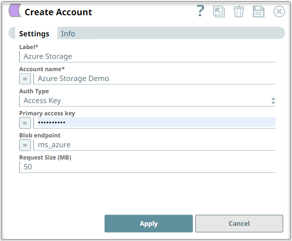 Use this account type to connect Binary Snaps with data sources that use the Azure Storage account.